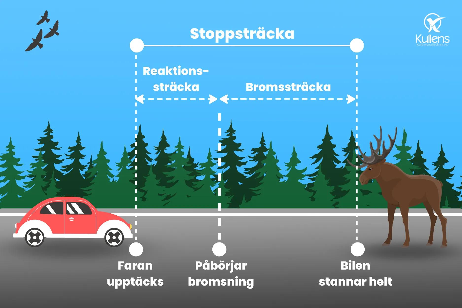 Stoppsträckan är den totala sträckan bilen färdas från det att föraren ser en fara tills bilen står stilla. Håll alltid ett längre avstånd än den beräknade stoppsträckan och håll alltid hastigheten som vägskyltarna visar. I osäkra lägen är det alltid en god idé att sakta ned och observera läget innan du kör som vanligt igen.